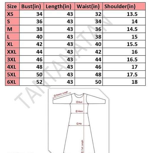 5XL (Bust Size: 50 in, Size Length: 43 in)