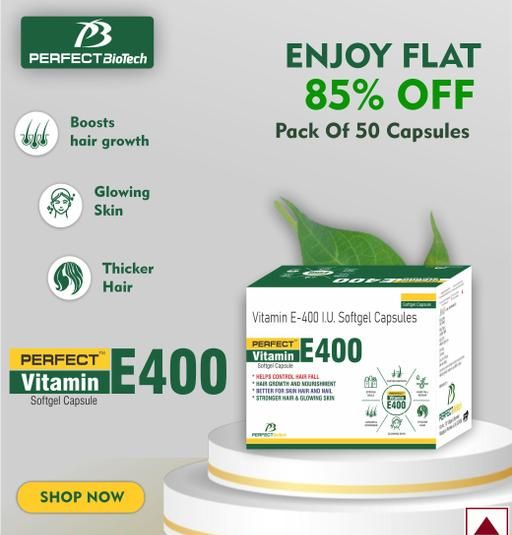 Perfect Vitamin E 400 is a supplement for skin care and hair care with potential immunity-enhancing properties. Take one Vitamin E capsule daily or as recommended by your dietician to avail its benefits • SKIN AGEING: Vitamin E helps protect the skin from the adverse effects of UV-induced oxidative stress while evening primrose oil helps restore a defective skin barrier and control water loss from the skin surface that improves skin smoothness and maintains youthful skin
