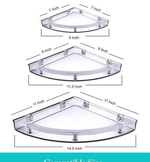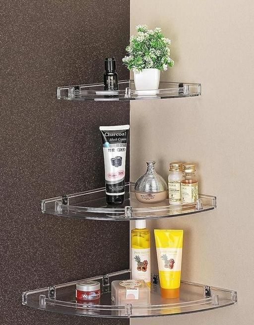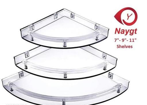 Name: Naygt Premium Quality Bathroom Corner Unbreakable Plastic 3in1 Round ABS Tray Acrylic Wall Shelf (Pack of 1) Bathroom Shelves