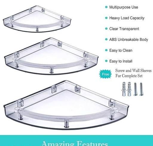 Wall Mount Corner Shelf Shower Caddy for Shampoo, Conditioner, Soap, Razors.Corner bathroom Self shower caddy.Product is a suitable for the corner of the rack, placed cosmetics / wash milk / soap bottle and other purposes, bearing strong.Ideal bathroom shelf for storing toiletries.Resistant, strong and durable.Product material using high-quality Unbreakable Plastic space, with rust, light, good hardness.Package Included: Corner Self Set 3.Material:Unbreakable Plastic.3in1 Corner shelf Corner Wall Shelves Home Decor 3 Shelves Corner Corner Set of 3 Plastic Wall Shelf Corner Wall Shelves Home Decor Plastic.