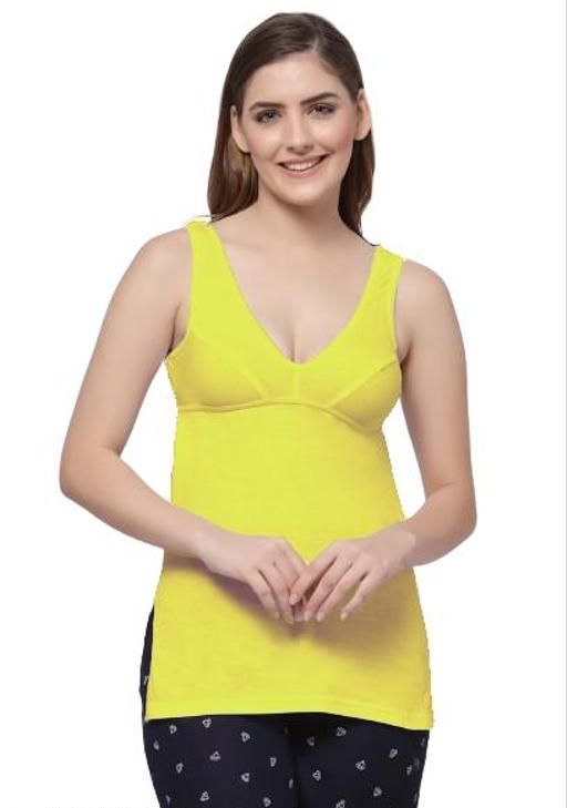 Designed for comfort and support, the Women's Fashion Camisole Top is a multipurpose and fashionable item of innerwear. This camisole is made of soft, breathable cotton and has broad straps and a V-neck for a comfortable fit every day. Ample coverage is provided by its seamed thigh-length shape, which makes it perfect for layering on its own or as an innerwear piece. This camisole, which is wire-free and non-padded, guarantees optimal comfort while keeping a sleek, polished appearance. It is a must-have for women and girls because it goes well with every outfit and comes in stylish multicolored variants. This cotton camisole is a dependable option for any situation, whether it's for sleeping, relaxing, or wearing underneath clothing.