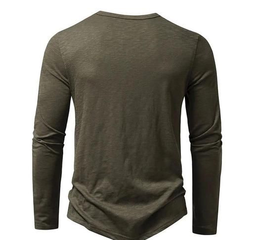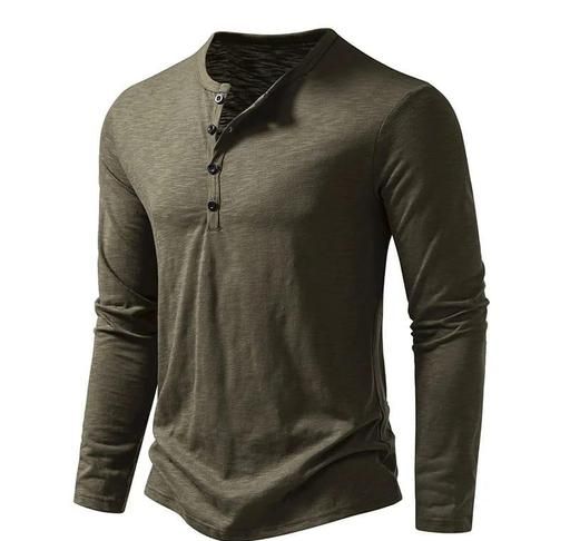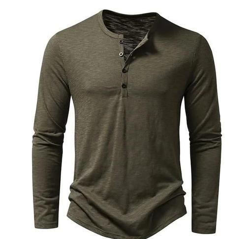 Name: Solid Color T-Shirt Men Autumn Winter Henley-Neck Buttons Neckline Long Sleeve Slim Fit Bottoming Tee Shirt Army