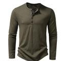 Solid Color T-Shirt Men Autumn Winter Henley-Neck Buttons Neckline Long Sleeve Slim Fit Bottoming Tee Shirt Army