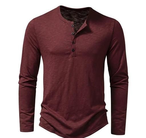 Name: Solid Color T-Shirt Men Autumn Winter Henley-Neck Buttons Neckline Long Sleeve Slim Fit Bottoming Tee Shirt Army