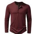 Solid Color T-Shirt Men Autumn Winter Henley-Neck Buttons Neckline Long Sleeve Slim Fit Bottoming Tee Shirt Army