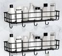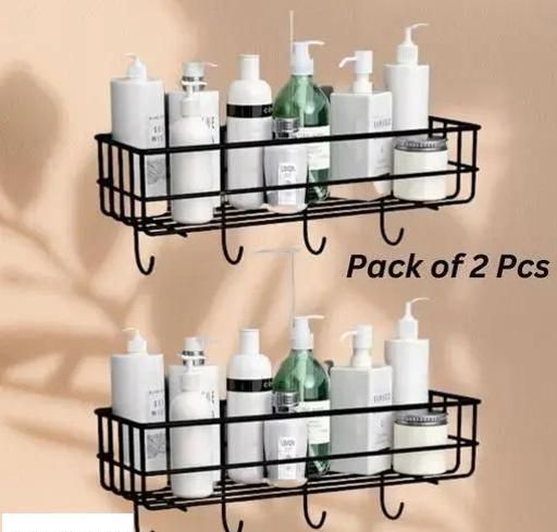 Name: Pack Of 2 Storage Hook Shelf for Wall Self-Adhesive Multipurpose Bathroom Shelf with Hooks/Towel Holder/Rack/Bathroom Accessories-Wall Mount (Black)