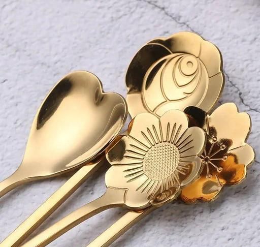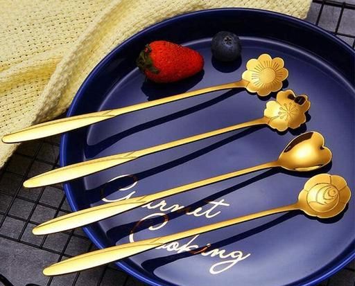 Name: 4 Pieces Stainless Steel Flower Coffee Spoon Dessert Spoon Sugar Spoon Ice Cream Spoon Stirring Spoon Tea Spoon Milkshake Spoon Set for Tableware Kitchen, Cafe or Bar | 4 Different Patterns