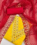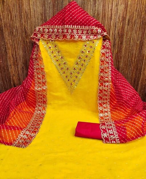 Name: Bliss Flair Yellow chanderi Silk Gota Patti Embroidered Dress Material suit for women With Heavy Neck And Lace (Unstitched) beutifull dupatta pakistani suit , festive wear for women