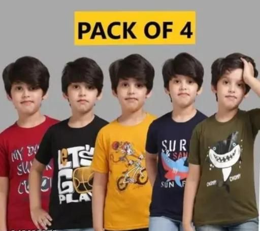 Name: Colorful Fun 4-Piece Multicolor Kids' Half-Sleeve T-Shirt Pack : Multicolor Kids' T-Shirts | Half-Sleeve T-Shirt Pack | 4-Piece Kids' T-Shirt Set | Colorful Kids' Clothing | Half-Sleeve T-Shirt Set