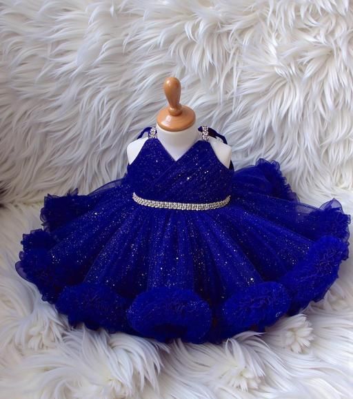 Name: Baby Girls Net Party wear frock baby girls dress for 6-12 Months baby girls dress for 1-2 Years | royal blue with glitter, A-line silhouette, layered ruffle hem, sequins, beads, A-line, dress, party frock, ruffles, sleeveless, V-neck, belted, ruffled, above knee, Girls, partywear, tulle