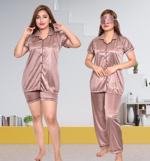 Name: Fashionable night suit for women and satin night suit combo set including short