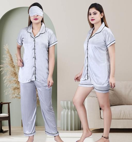 ✨ Indulge in luxury and comfort with this premium satin night suit for women. This elegant 4-piece set features a stylish button-down shirt, a soft pajama, a playful short, and a matching eyemask – giving you everything you need for a perfect night’s rest. Designed in silky smooth satin, it feels gentle on the skin, lightweight, and breathable for ultimate comfort. The night suit for women short is perfect for warm evenings, while the pajama offers cozy relaxation on cooler nights. This versatile women nightsuit top and short set for women doubles as chic loungewear, making it as fashionable as it is comfortable. Whether you’re looking for a sexy night suit for women or a trendy night suit for ladies, this set is the all-in-one solution to upgrade your nightwear collection.