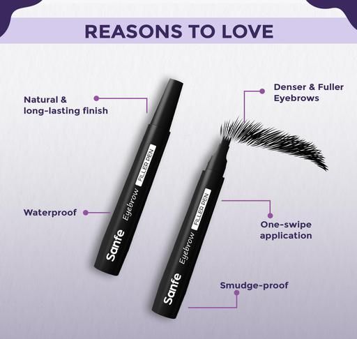 Name: Sanfe Eyebrow Filler Pen | Perfect Eyebrow Enhancer, waterproof & smudge-proof | one swipe application with micro precision, natural & long-lasting finish | For Denser & Fuller Eyebrows | Black