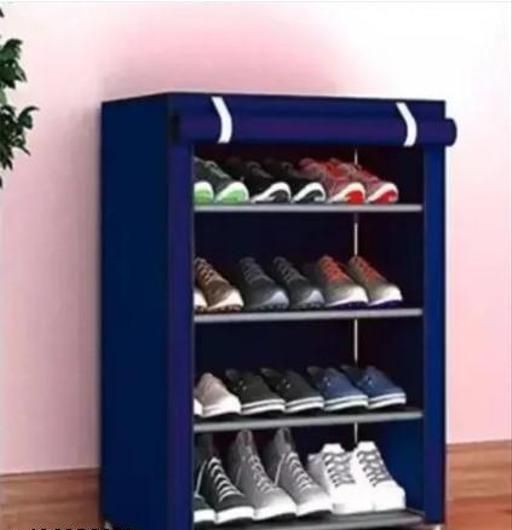 A collapsible shoe rack is a versatile and space-saving storage solution designed to keep footwear organized, cloths and easily accessible. Typically constructed from lightweight yet durable materials such as plastic, or wood, and white connectors these racks feature a foldable frame that allows them to be collapsed into a compact form when not in use, making them ideal for small living spaces or for seasonal storage. The rack often consists of multiple tiers or shelves, each capable of holding several pairs of shoes. Some models include additional features like adjustable shelves, stackable designs, or side pockets for storing accessories like shoe polish, laces, or insoles. The collapsible design ensures easy portability and quick setup, making it convenient for use in various locations such as entryways, closets, dorm rooms, or garages. Overall, a collapsible shoe rack offers a practical and efficient way to keep shoes organized while maximizing available space. This shoe stand is designed for making space attractive in home and it is easy assemble almari, almirah, plastic.