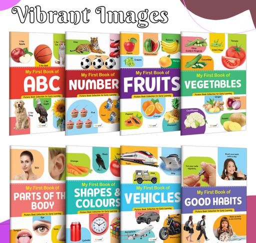 Name: My First Picture Book Collection For Early Learning With 8 Topics (Waterproof, Dust-Resistant, Big Fonts, Laminated, Realistic Pictures) | Gift Set For Kids