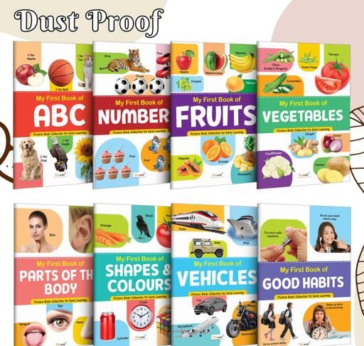 My First Picture Book Collection For Early Learning With 8 Topics (Waterproof, Dust-Resistant, Big Fonts, Laminated, Realistic Pictures) | Gift Set For Kids