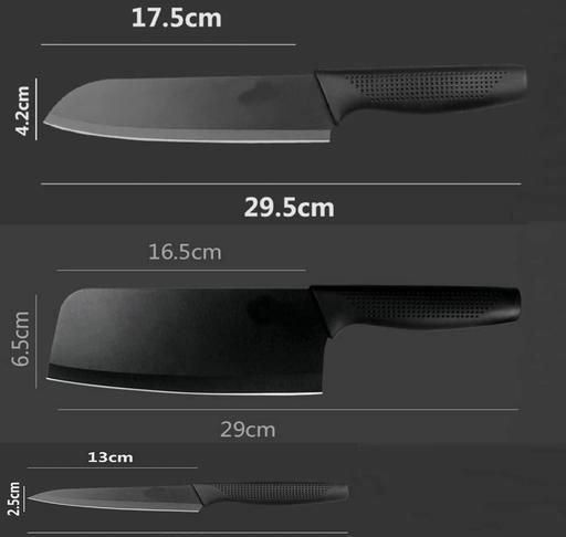 Name: NAND IMPORTER Stainless Steel 3 Pieces Professional Kitchen Knife Set, Meat Knife, Chef's Knife with Non-Slip Handle Sharp Manual Sharpening for Home Kitchen and Restaurant (2) - Black