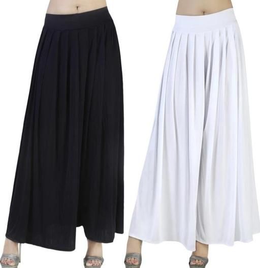 Name: Stylish Crepe Palazzos (Set Of 2) BLACK...WHATE