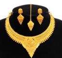 Golden Necklace With Earrings And Maangtika Jewellery Set