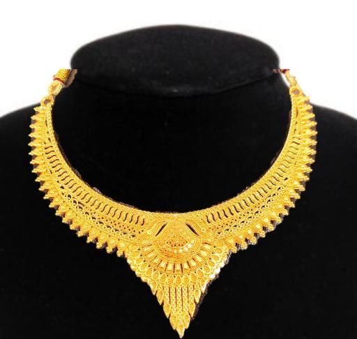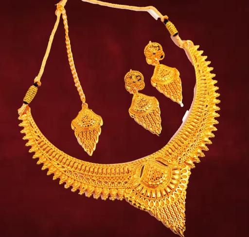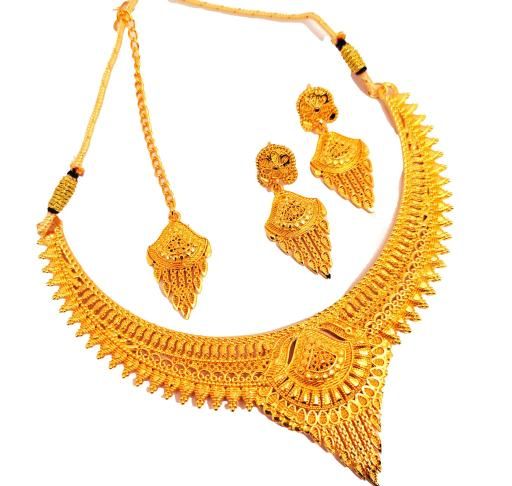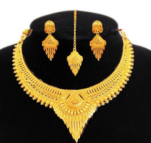 Name: Golden Necklace With Earrings And Maangtika Jewellery Set