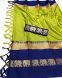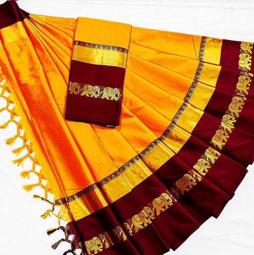 Name: Rajawadi Elegant Elephant Design Cotton Silk Saree (Mango & Brown)