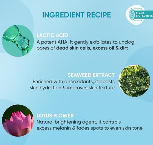 This milky white creamy foaming cleanser with triple active formula of Lactic, Tartaric and Malic acid along with orange and lemon extract to form strong foaming cleansing action to unclog pores, remove dirt, and exfoliate dry skin cells. Its sulphate-free molecules form creamy, cloud-like foams to remove makeup and sunscreen without any dryness, thus leaving skin dewy and plump. Seaweed and lotus flower extract makes it ideal for sensitive skin as it reduces skin inflammation, thus promoting a healthy skin barrier. With regular use, the skin will feel clean, smooth and extremely soft.