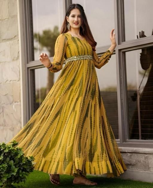 Name: TRENDING MUSTARD COLOR AJRAKH PRINT GOWN