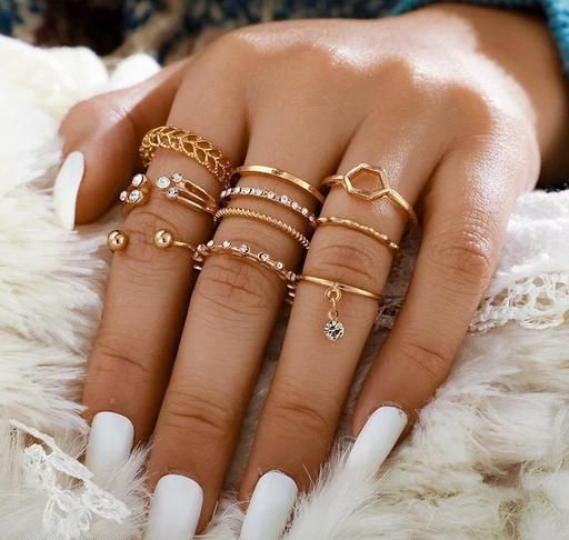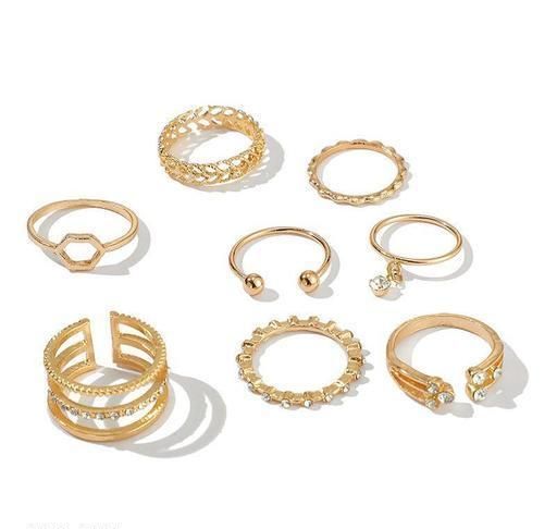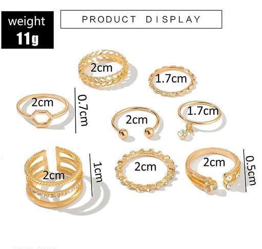 Gold Plated Eight Piece White Crystal Drop Heart Multi Designs Ring Set For women & Girls Embrace yourself with the charming designer accessories in trend that will add more grace to your beauty. Stylish and alluring artificial Rings are perfect cut out for the suitable attire demanded by the occasion