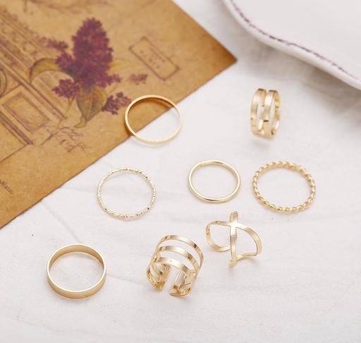 Gold Plated Seven Piece Trendy Dailywear Western Designs Ring Set For Women & Girls these rings are suitable for party wear or casual wear. these rings are also ideal for special birthday gifts for girls, women, valentine gifts for girlfriend.