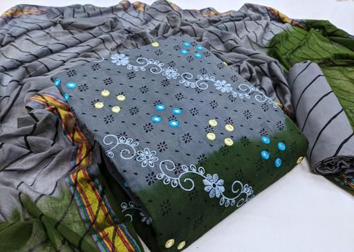 EXCLUSIVE LAUNCHING EMBROIDERY WITH MIRROR WORK DRESS MATERIAL, TOP- PURE COTTON WITH TIEDYE AND EMBROIDERY, SALWAR- COTTON WITH LERIYA PRINT , DUPATTA- COTTON WITH LERIYA PRINT UNSTITCHED DRESS MATERIAL