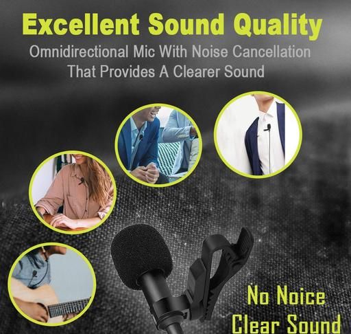 Name: 3.5 mm Clip Collar Microphone with Round Pouch | Compatible for Video Audio recording, 1.5 Meter Length Microphone (Black) Microphone
