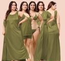 6 pic nighty with Robe nicker-top Bikini soft/Comfortable all night Sleepwear full Satin Women Nightdress set english pink Satin-nighty-full-length-2-pieces-nighty-2-pcs-set-of-nighty-shorts-top-nighty-wrap-gown-night-wear-sleep-wear-for-women-free-size-30-to-36-regular 6 piece bridal set