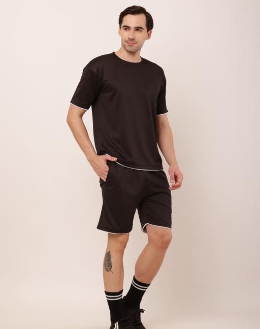 Design: Trendy oversized T-shirt and relaxed-fit shorts, both with modern branding tag