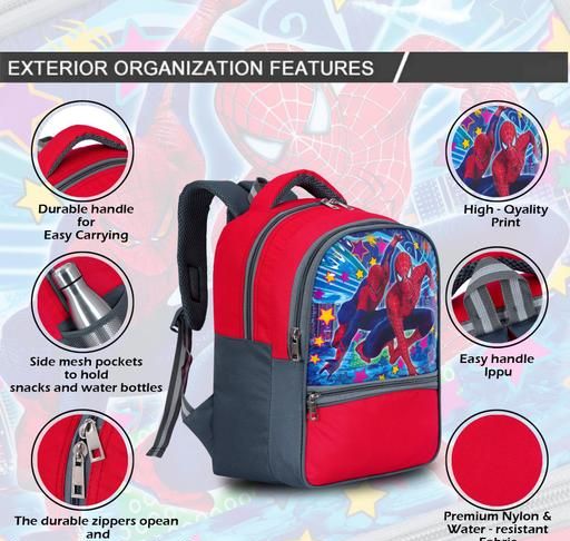 Name: Spiderman bag 30 Liter 16 ×12inch Pre-School 31cm For Nursery (LKG/UKG/1st std) Waterproof School Bag with Free lunch bag