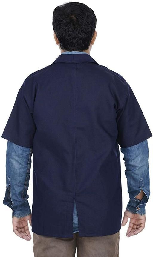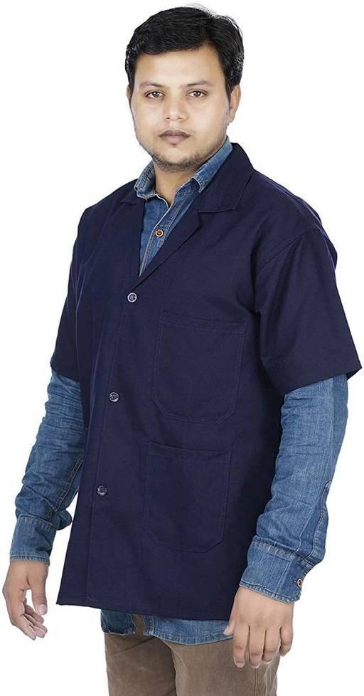 Comfortable cotton blend coat with short sleeves and a classic collar. Features front button closure and two functional pockets. Breathable, durable, and ideal for daily professional u
