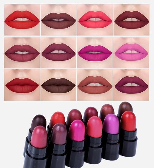 Set Of 12 Hot Enriched Super Matte Colour Lipstick Combo Highly Pigmented Longlasting Non Transfer Designed To Match Every Indian Skin Tone Our Enrich Matte Lipsticks Continue To Keep Your Lips Moisturized & Matte Soft, With Vibrant & Long-Lasting Color. Dresses Up Lips In Statement Shades In Matte Or Starry Matte Finish Brand Name Pinner