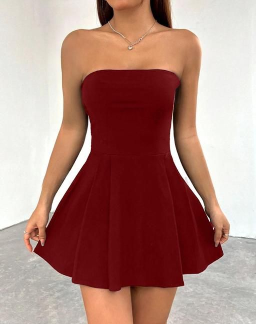 Name: Solid Tube Fit & Flared Mini Dress For Women.