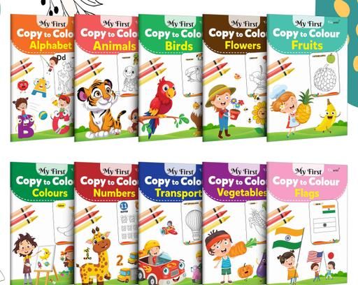 Ignite your child's creativity with the "My First Copy to Colour - Alphabet, Animals, Birds, Flowers, Fruits, Colours, Numbers, Transport, Vegetables and Flags" colouring book set. This vibrant collection includes 10 engaging copy-to-colour books, specifically designed for children aged 3-12. Each book is filled with charming illustrations that make learning fun and interactive. From the basics of the alphabet and numbers to the exploration of animals, plants, and world flags, this set offers a comprehensive and educational colouring experience. Measuring 5.5*8.5 inches, these books are perfectly sized for little hands, allowing children to colour comfortably and with ease. The combination of subjects encourages early learners to expand their knowledge while developing essential skills like hand-eye coordination, fine motor control, and colour recognition. The simple yet captivating images in each book provide an excellent starting point for young artists to express their creativity. This set is ideal for parents and teachers looking to combine fun with learning. It’s a great way to keep children engaged, whether at home, in the classroom, or on the go. GOWOO has thoughtfully designed this combo to be more than just a set of colouring books—it's a tool for nurturing creativity and educational growth. Make every colouring session a fun-filled learning adventure with this versati