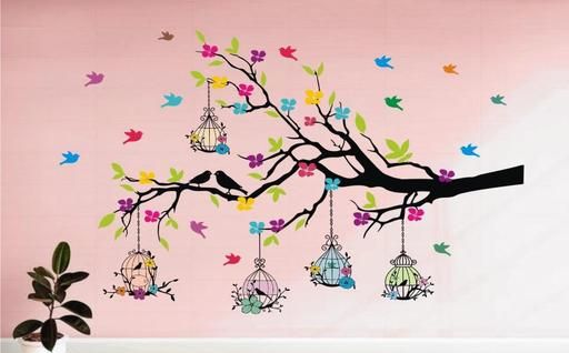 Name: - Medium - Tree Branches With Birdcage And Flower- Wallsticker wall sticker Stickers Multicolour