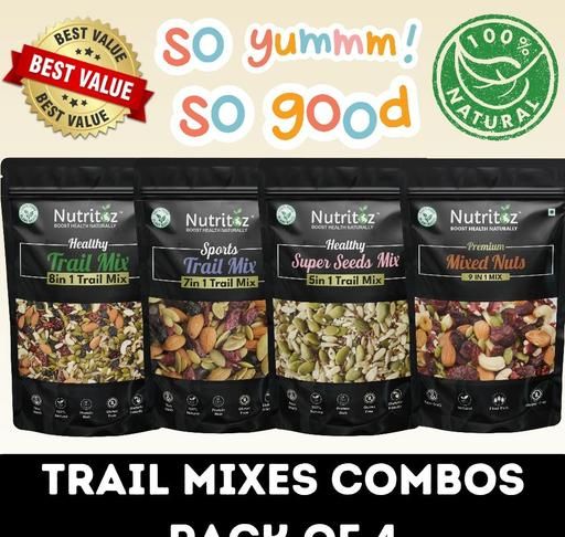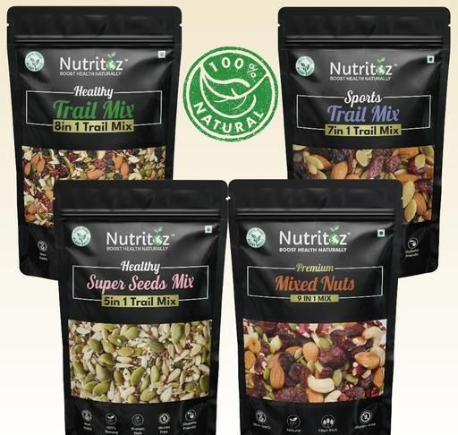 Nutritoz Trail Mixes, Mixed Dry Fruits, Mix Seeds a popular snack, is a versatile and nutrient-dense option that combines various seeds, nuts, berries, and dried fruits. Each of these components brings its own set of health benefits, making trail mix not only delicious but also a powerhouse of nutrition. Below, I’ll delve into the specific benefits of the seeds, nuts, berries, and dried fruits typically found in trail mix.