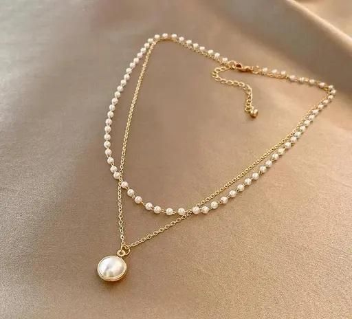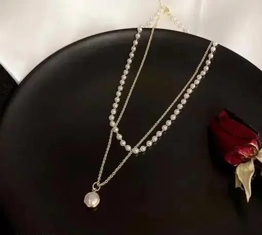An alloy-based Charming Gold Plated Pearl Double Layered Pendant Necklace for Women and Girls. Elevate any outfit with this versatile and stylish pearl necklace that adds a touch of elegance and charm to your look. This necklace is made of alloy and its gold plating makes it anti-tarnish to sustain in your closet for a long. These are also ideal for birthday valentine's gifts for girls, girlfriend, wife, daughter, wedding gifts, and anniversary gifts.