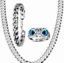Fashion Silver Chain & Owl Ring & Silver Bracelets pack of 3 item Silver Plated Stainless Steel Chain