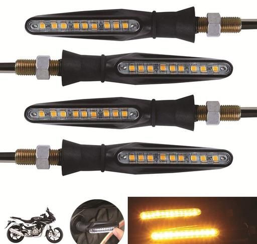 Pack of 4 Amber Bright SMD LED KTM Style Indicators. Light in weight. quick and easy installation. It helps you to be safe with its bright lights in all weather conditions. Indicator for Universal All Bike Models.