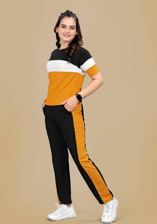 A Women S Track suit and night suit fabric is important Cotton lycra is very good fabric and Stretchable fabric women's tracksuit is a coordinated set of comfortable athletic clothing that typically includes a or T-shirt and matching Trouser. Made from materials like cotton, Blend, or blends, tracksuits often have a soft, stretchy feel for ease of movement. They're commonly worn for sports, workouts, or casual activities, offering both style and functionality. Design variations range from slim-fit to relaxed styles, and they come in a variety of colors and patterns to suit personal preferences .A women's tracksuit is a coordinated set of comfortable athletic clothing that typically hoodie and matching pants. Made from materials like cotton, Lycra , or blends, tracksuits often have a soft, stretchy feel for ease of movement. They're commonly worn for sports, workouts, or casual activities, offering both style and functionality. Design variations range from slim-fit to relaxed styles, and they come in a variety of colors and patterns to suit personal preferences Night Suits/Track Suits/Co ords/Night Dress/Gym Suits is made of Cotton Blend fabrics and includes ankle-length bottoms with a fold, both side pockets, heavy stretch elasticated on both full sides, and a drawstring at the wa