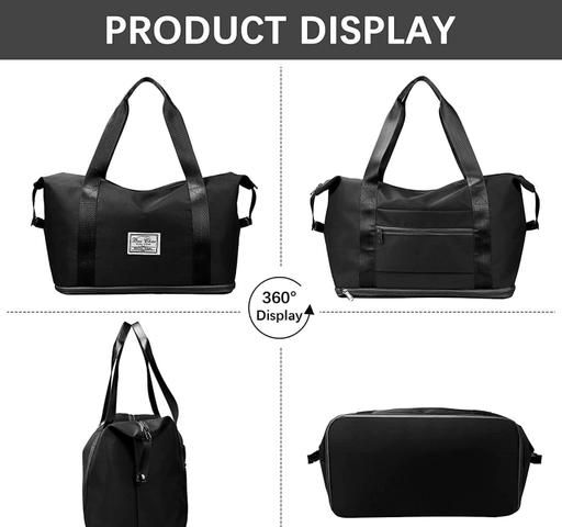 Large capacity folding travel bag made with lightweight waterproof and tear resistant Polyester fabric, solid, durable and strong enough to carry. It is enough for short trips and can easily accommodate 3-5 days of travel clothes.