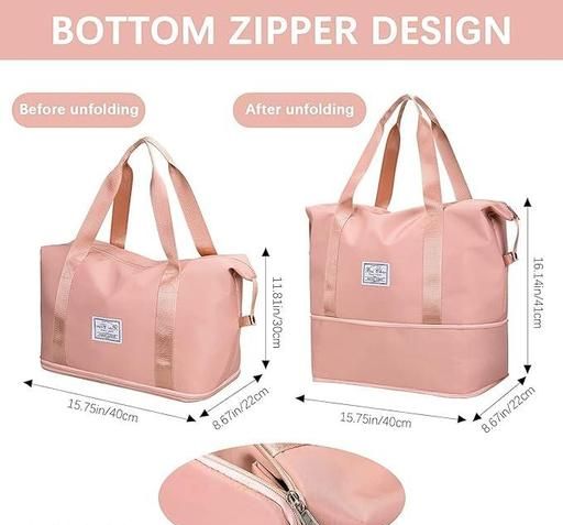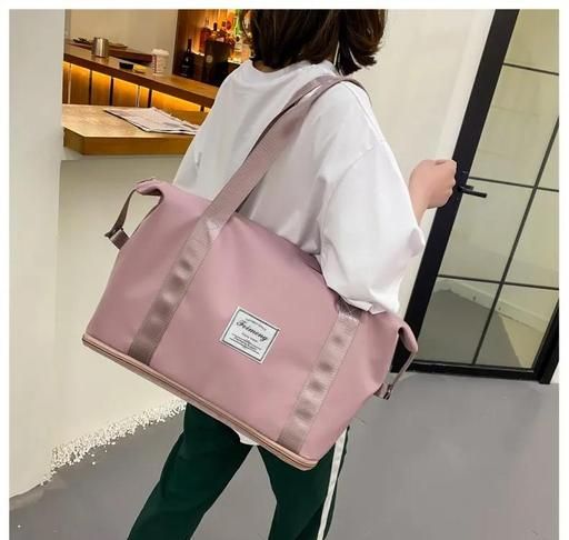 Large capacity folding travel bag made with lightweight waterproof and tear resistant Polyester fabric, solid, durable and strong enough to carry. It is enough for short trips and can easily accommodate 3-5 days of travel clothes.