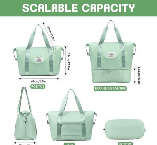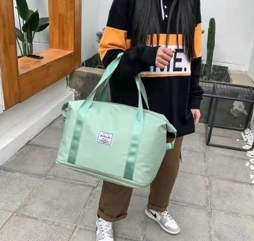 Large capacity folding travel bag made with lightweight waterproof and tear resistant Polyester fabric, solid, durable and strong enough to carry. It is enough for short trips and can easily accommodate 3-5 days of travel clothes.