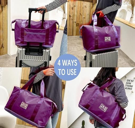Large capacity folding travel bag made with lightweight waterproof and tear resistant Polyester fabric, solid, durable and strong enough to carry. It is enough for short trips and can easily accommodate 3-5 days of travel clothes.
