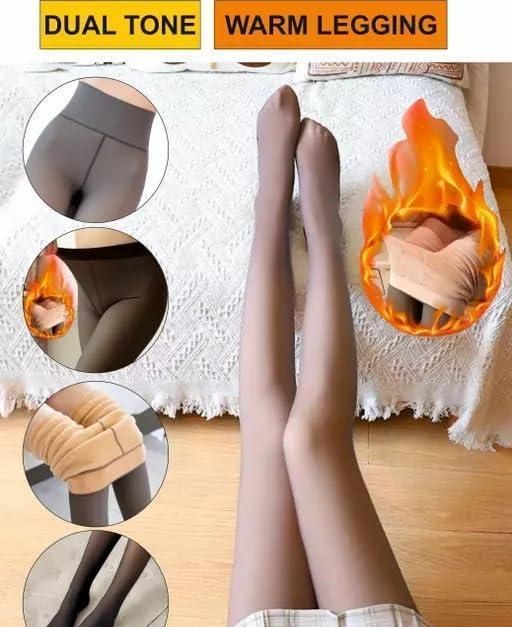 Name: PinKit Women/Girl Winter Warm Fake Translucent Bronze ColourSoft Fleece PantyHose / Leggings (With Socks)Thigh High Fits Skinny Fit (28-32) Waist Size