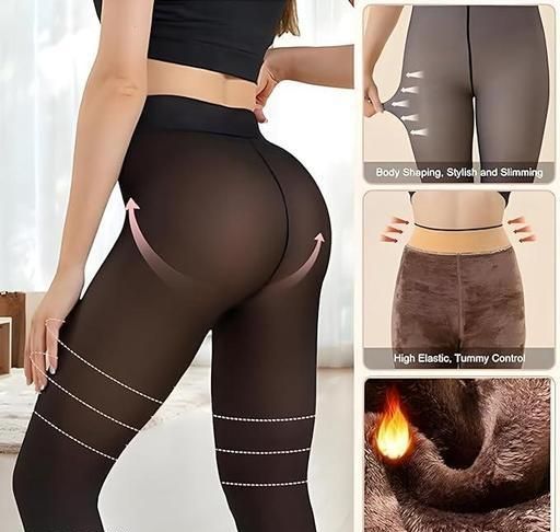 Name: PinKit Women/Girl Winter Warm Fake Translucent Bronze ColourSoft Fleece PantyHose / Leggings (With Socks)Thigh High Fits Skinny Fit (28-32) Waist Size